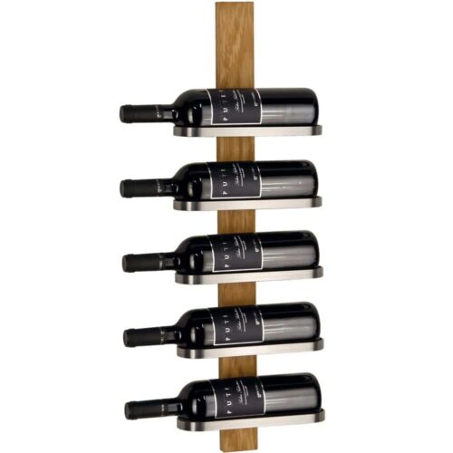 Mazzi vinställ 5 flaskor i oljad ek/ slipat stål från Oscarssons Möbel. Ett svensktillverkat vägghängt vinställ i exklusiv design!