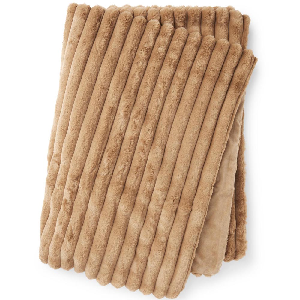 Stripy pläd finns i tre olika färger, taupe, svart och cognac.