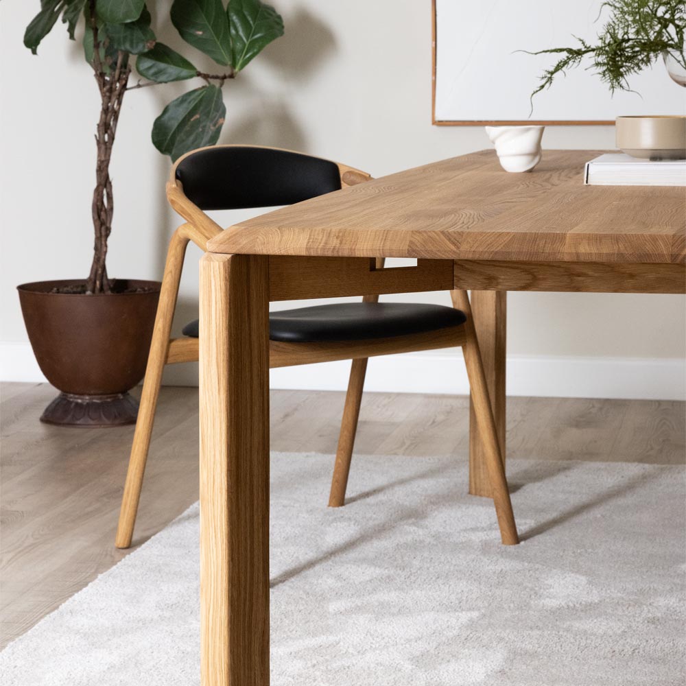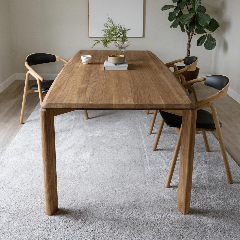 Driplet matbord tillverkas i massiv ek eller massiv ask. Välj mellan olika färger på ytbehandlningen. Köp Driplet matbord och designa efter ditt tycke och smak!
