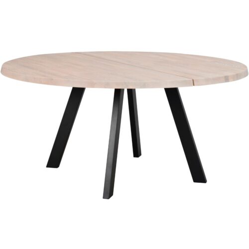 Fred runt matbord i massiv borstad whitewash ek mattlack från Rowico. Bordsskivan har en snygg delning i mitten. Ben i svartlackad metall.