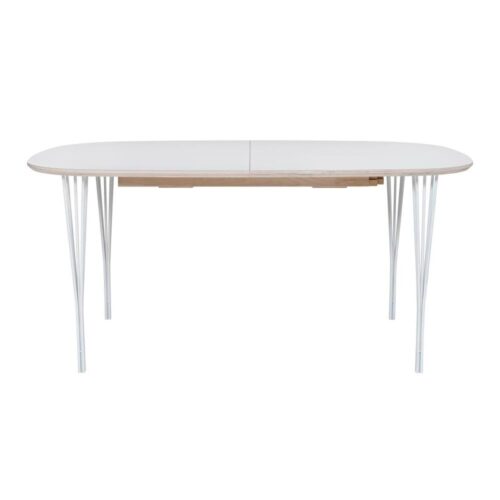 Space matbord i vitt laminat tillverkat av danska Haslev. Eleganta och nätta trådben i krom. Välj mellan olika storlekar. Ett snyggt och tidlöst matbord med dansk design och tillverkning!
