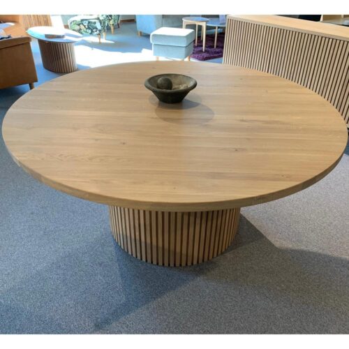 Timo runt matbord i massiv vitoljad ek. Timo matbord ger ett pampigt intryck med en massiv bordsskiva med en tjocklek på 40mm som mäter 160cm i diametern.