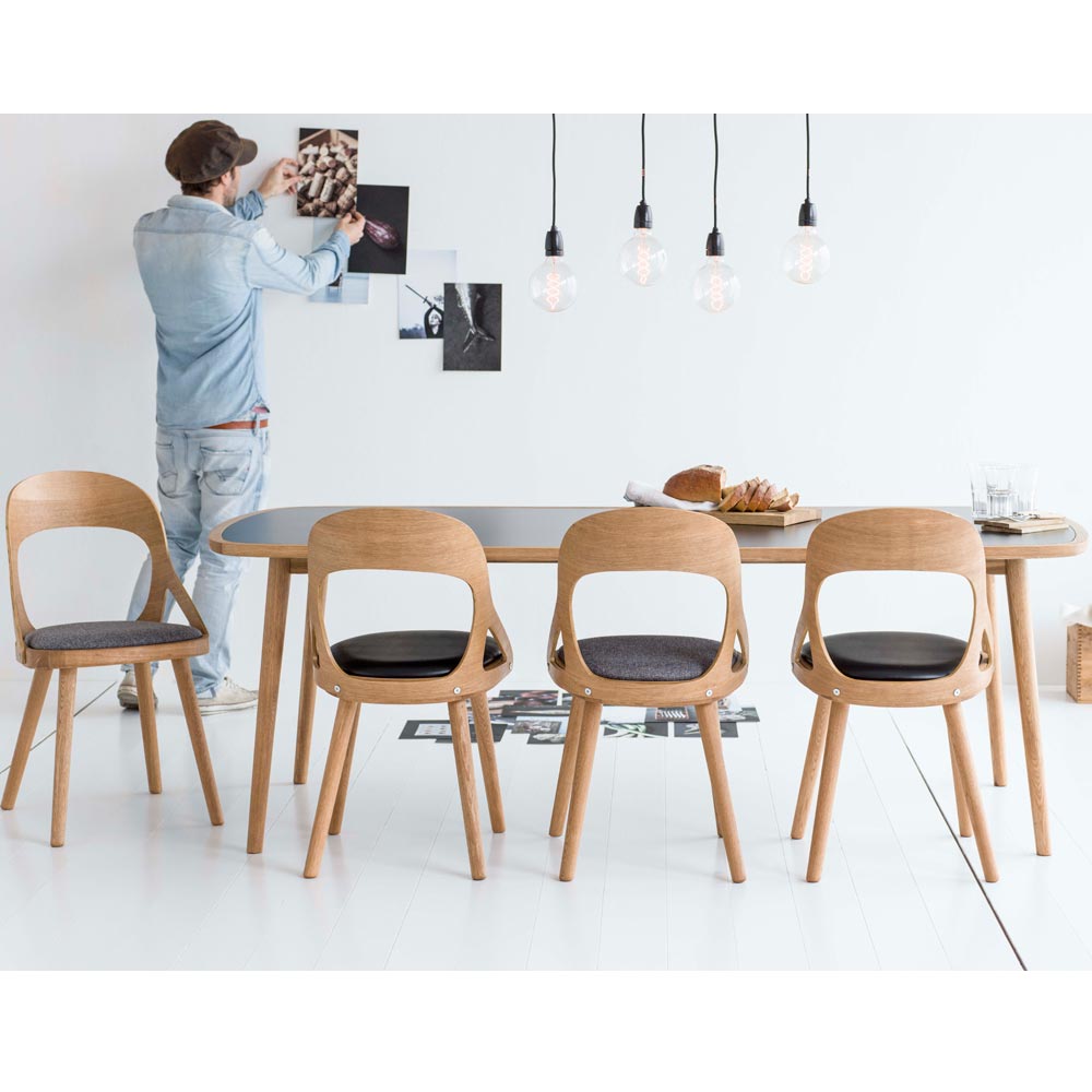 Colibri matgrupp från Hans K, designad av Markus Johansson. Colibri stol bjuder på en generös sittkomfort som andas genomtänkt omtanke om varje detalj.