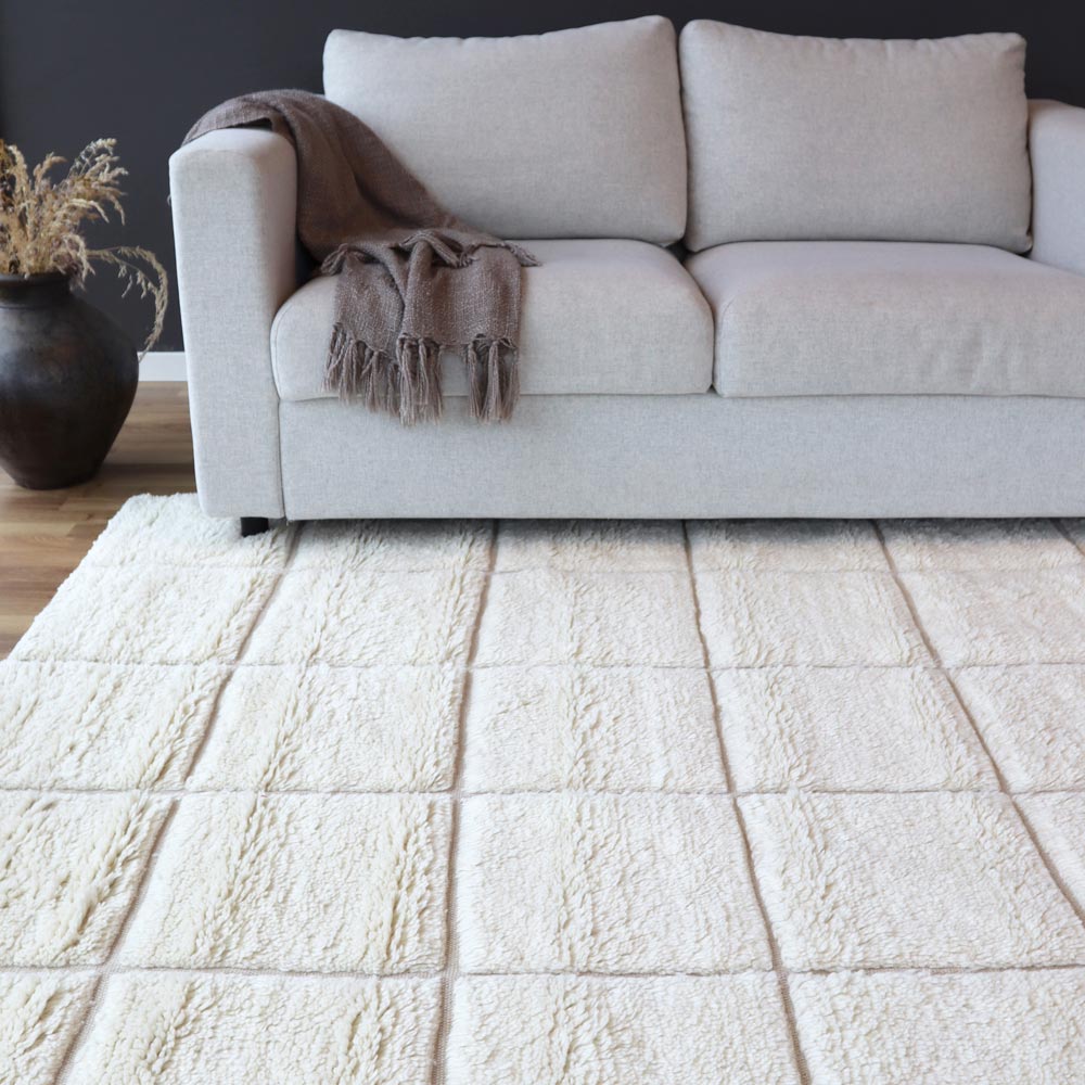 Safi är en handvävd ullmatta i ett rutigt high- and lowmönster från InHouse Group. Safi är en mjuk matta med både en modern och ombonad känsla som passar perfekt i både vardagsrummet och sovrummet.