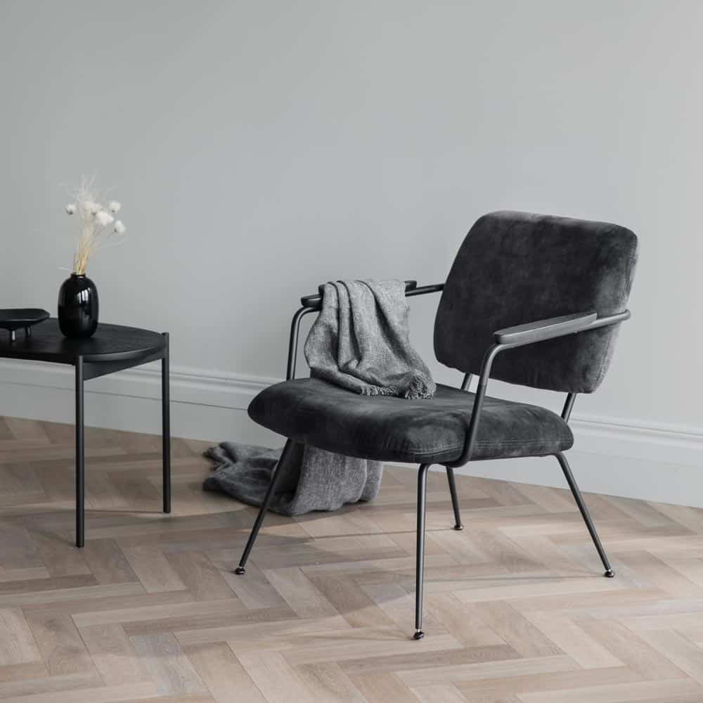 Bergen fåtölj inkl. fotpall – fårskinn grafit