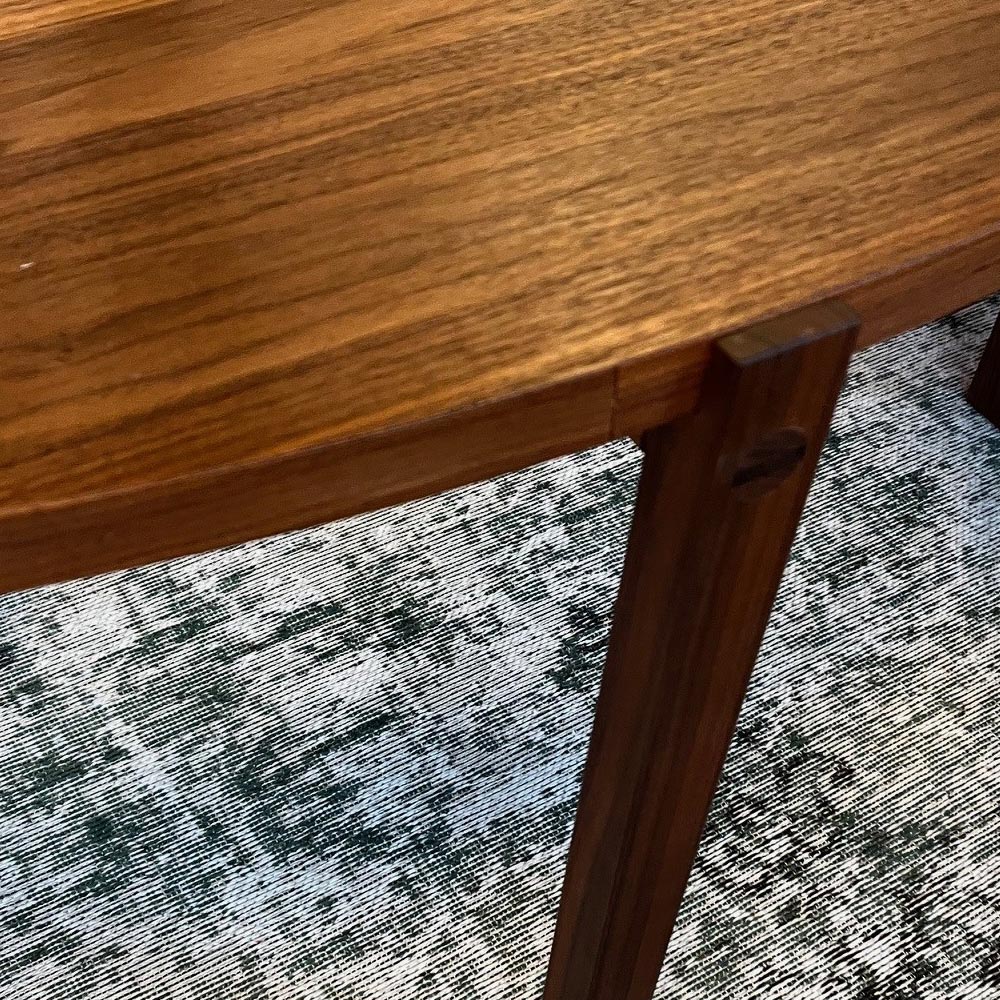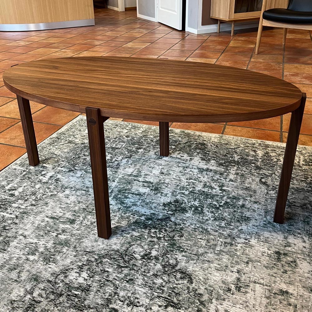 Skivan är i fanérad oljad valnöt och benen i massiv oljad valnöt.