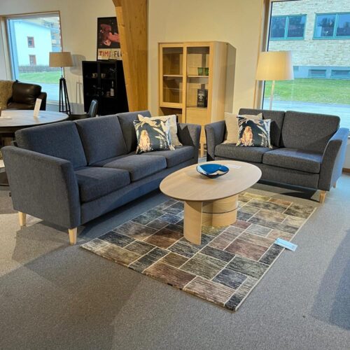 Cara 2-sits soffa + 3-sits soffa i tyg Nordby navy/ ben i vitoljad ek.