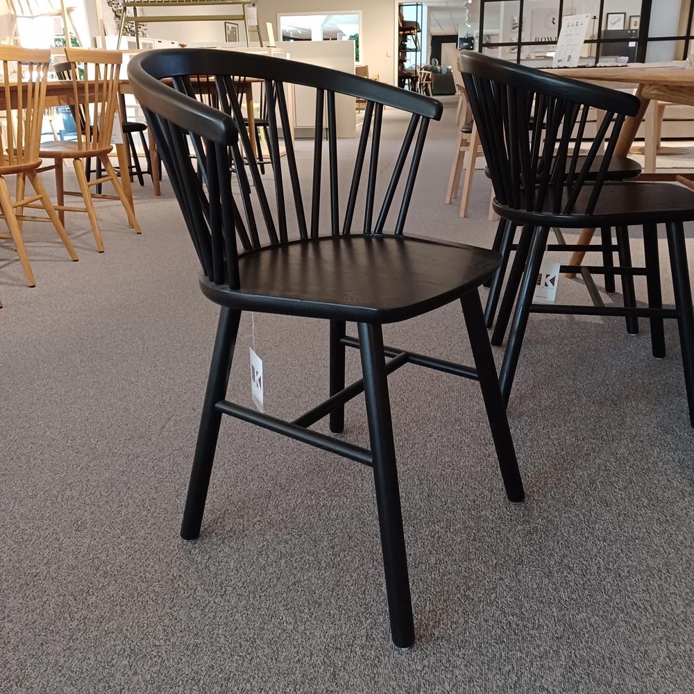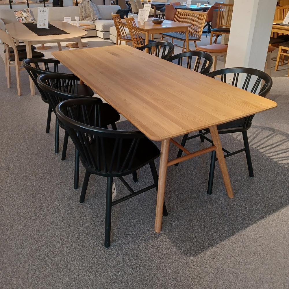 San Marco matbord i massiv oljad ek tillsammans med 6st ZigZag karmstolar i svartbetsad ek. En snygg matgrupp från Hans K.