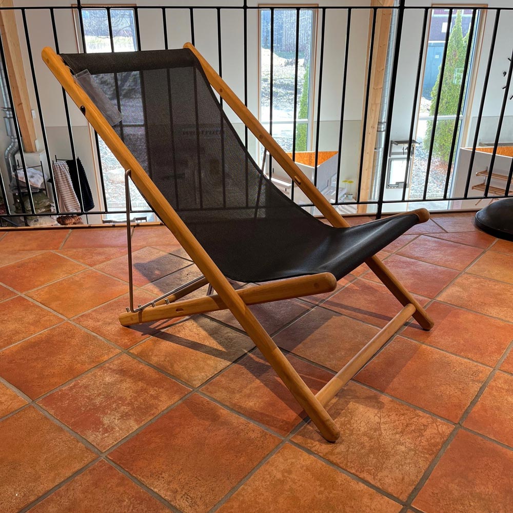 1st Sindos strandstol i teak/ svart textiléne från Brafab.