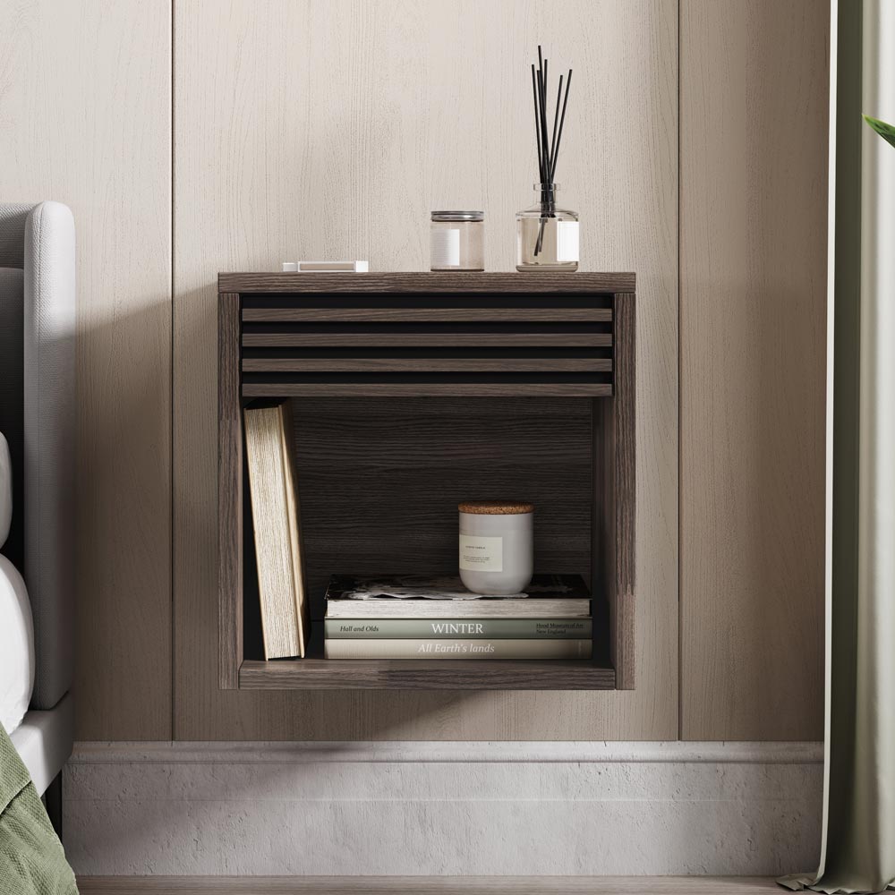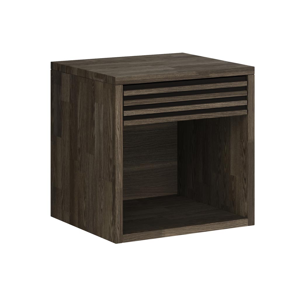 Broholm vägghängt sängbord i smoked ek från danska Casö. Ett mycket snyggt sängbord med liggande ribbor på lådan.