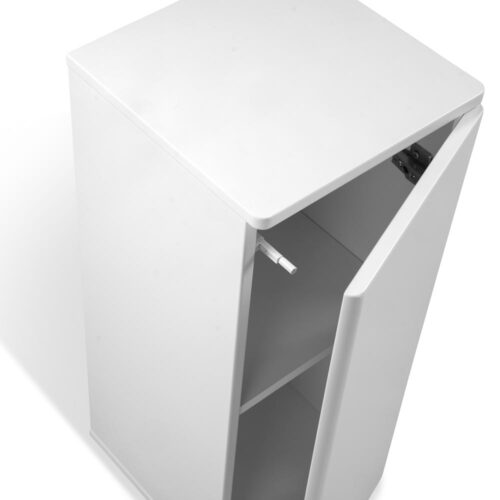 Mono sängbord i vitlack från Mavis. Mono sängbord har en enkel och stilren design med mjukt rundade hörn på toppen och dörren. Öppnas med push och dörren monteras höger- eller vänsterhängd.