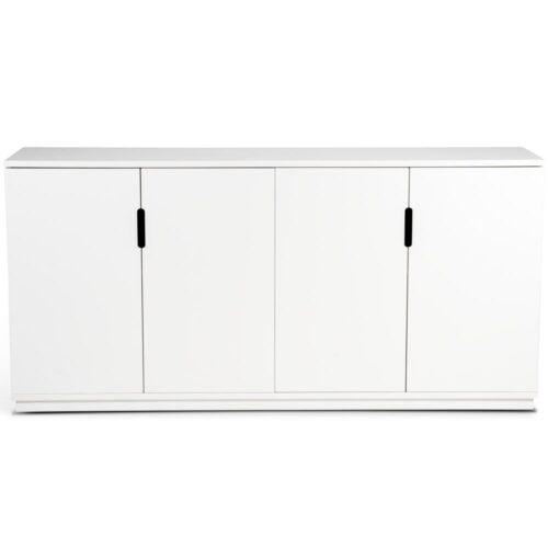 Aoko sideboard med täckta dörrar i vitlack från Mavis Möbler. Urfrästa handtag och mjukstängande gångjärn. Ett stilrent sideboard designat av Martina Elgemark.