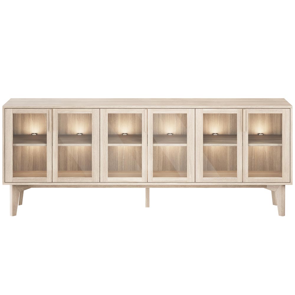 Casö 551 sideboard i massiv /fanerad vitoljad ek från danska Casö. Casö 551 sideboard är en snygg möbel i klassisk och tidlös design med rena linjer och mjukt rundade hörn. Sideboardet erbjuder bra förvaringsmöjligheter bakom vackra, mjukstängande vikdörrar i glas och med flyttbara hyllplan.