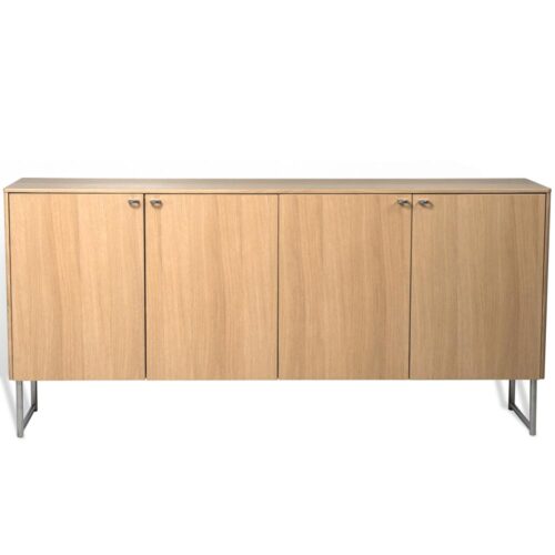 Deus sideboard i vitpigmenterad mattlackad ek från Mavis möbler. Ett nätt sideboard med rundade hörn i framkant och enkelt metallgrepp. Deus sideboard med mjukstängande dörrar och flyttbara hyllplan.