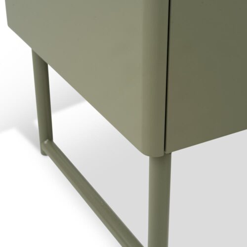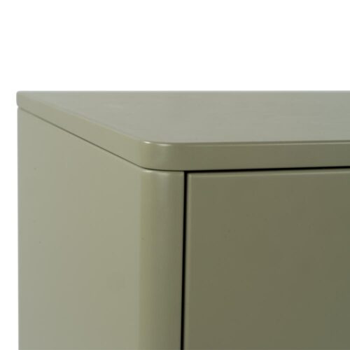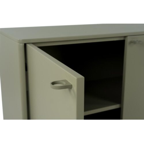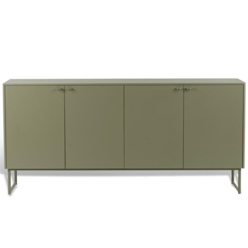 Deus sideboard i olivgrå lack från Mavis möbler. Ett nätt sideboard med rundade hörn i framkant och enkelt metallgrepp. Deus sideboard med mjukstängande dörrar och flyttbara hyllplan.