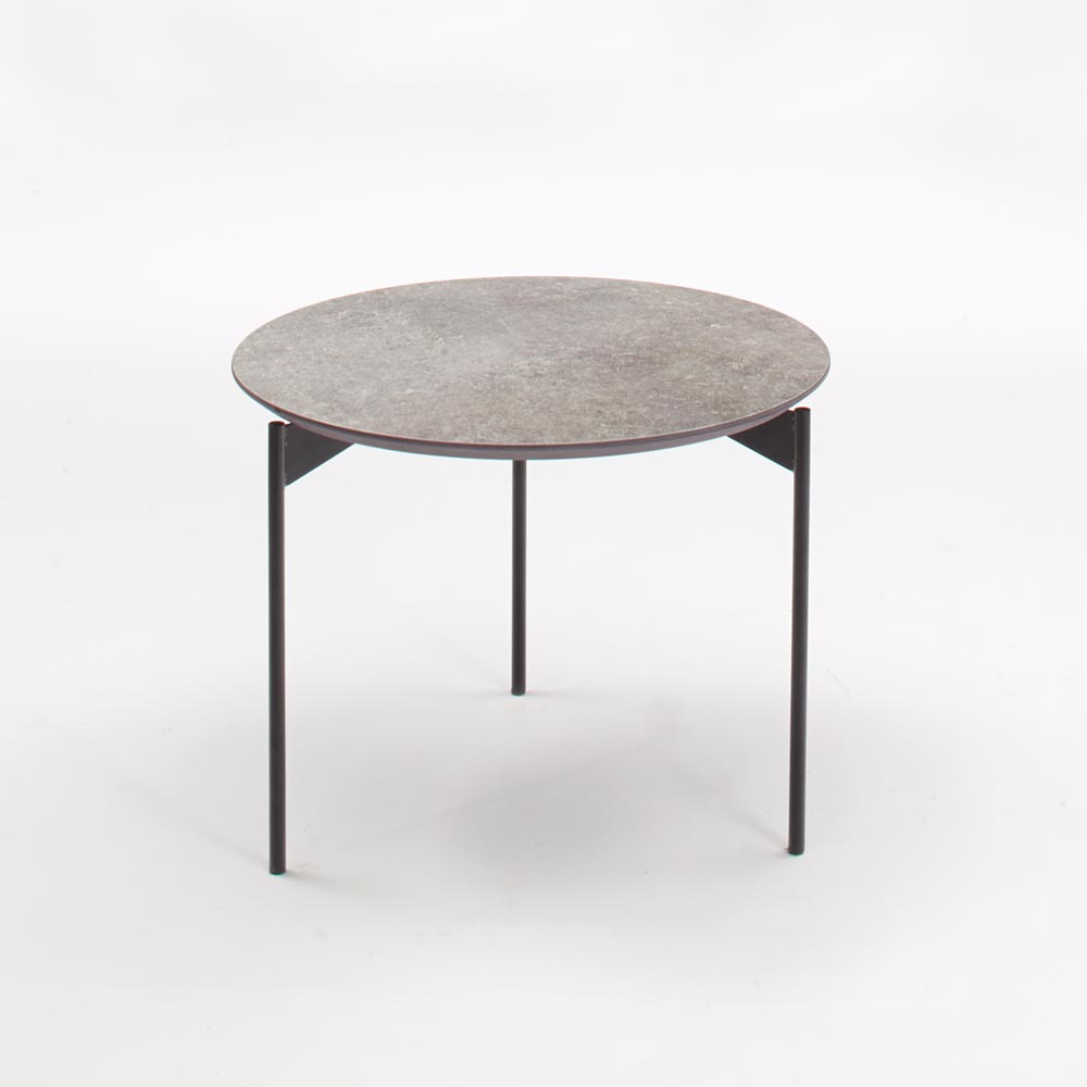 Livorno soffbord är tillverkat i ett snyggt högtryckslaminat med en betongliknande yta. Smäckra svartlackerade metallben.