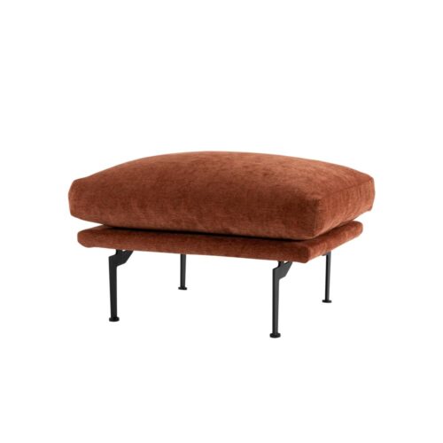 Aston /Electra fotpall från småländska Bröderna Andersson. Smäcker design med benbockar i svart metall som ger ett svävande intryck med en distans mellan stomme och benbock. Ett snyggt komplement till Aston eller Electra soffa. Pallen på bilden är klädd i tyg Easy orange.