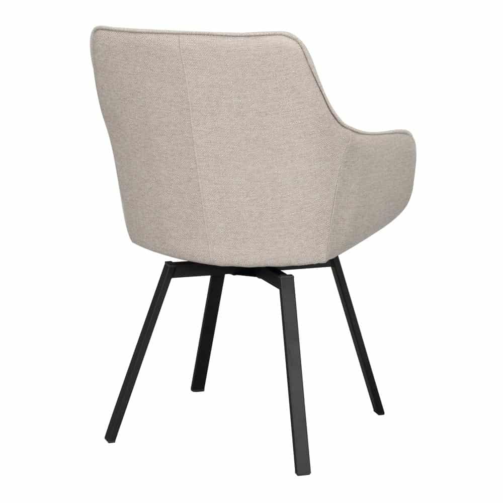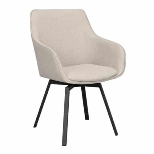 Alison karmstol i beige tyg och underrede med snurrfunktion i svartlackad metall från Rowico.