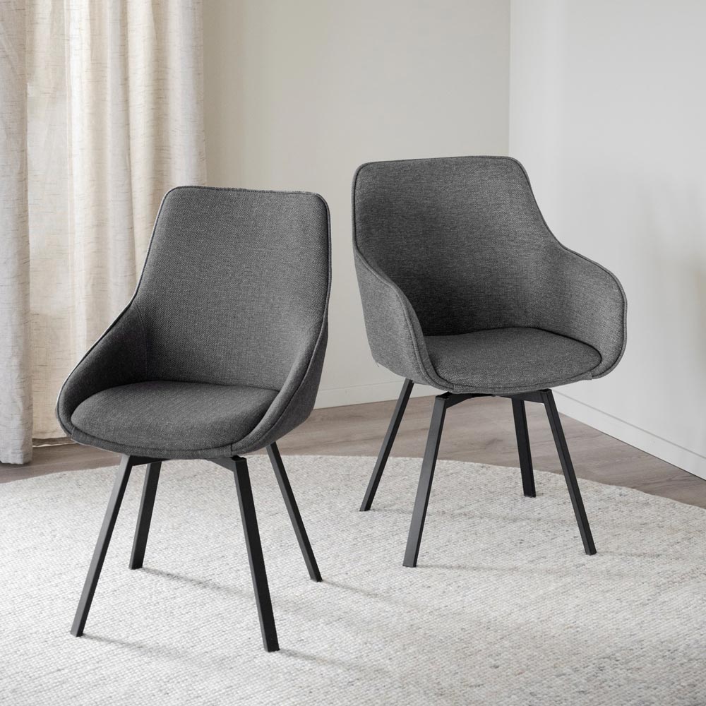 Alison karmstol i grått tyg och underrede med snurrfunktion i svartlackad metall från Rowico.