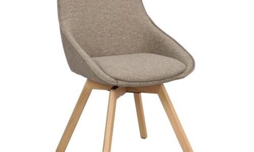 Alison stol i mörkbeige tyg och underrede med snurrfunktion i trä från Rowico.