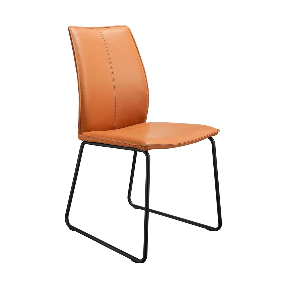 En stol med flera valmöjligheter som passar till de flesta typer av bord och stilar. Välj mellan läder cognac eller svart och underrede i svart stål eller vitoljad ek.