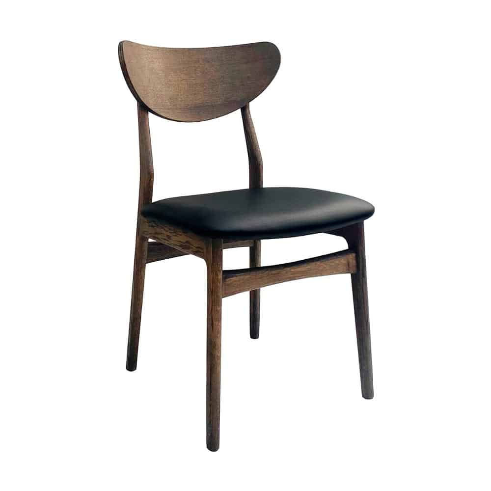 Esther stol i massiv smoked oljad ek från danska Casö. En snygg retrostol med rundad ryggbricka och skön sittkomfort! Välj mellan sits i cognac eller svart läder.