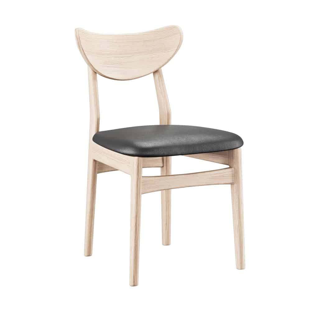 Esther stol i massiv vitoljad ek från danska Casö. En snygg retrostol med rundad ryggbricka och skön sittkomfort! Välj mellan sits i cognac eller svart läder.