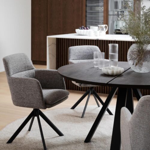 Gladstone karmstol i mörkbeige tyg och svart metallunderrede är en mycket skön stol från Rowico. Gladstone karmstol har både snurrfunktion med 360 grader och gungfunktion vilket gör stolen väldigt omtyckt.