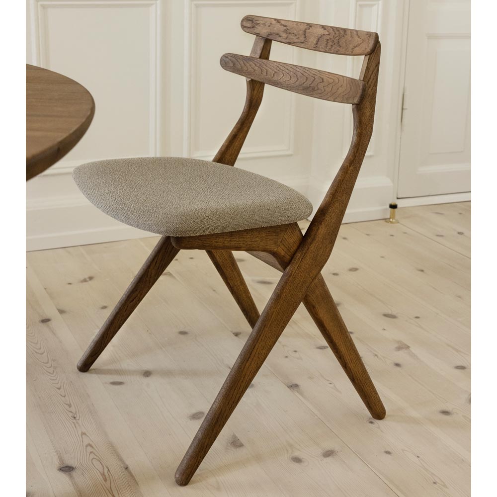 Saks stol (KC01) i oljad ask antikbrun C12/ tyg Grain 2288/ 61253 från danska Kristensen & Kristensen. Saks stol är designad av Poul M. Volther.