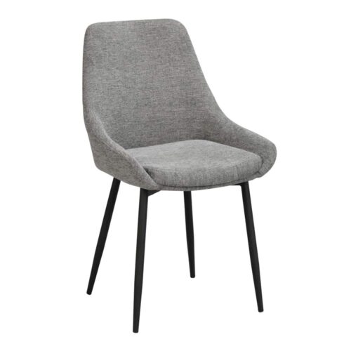 Sierra stol i modern design från Rowico. Stolen är klädd i ett grått tyg och ben i svart pulverlackad metall. Stolens stoppade sits i kupad form gör den fantastisk skön att sitta i.