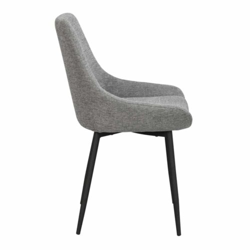 Sierra stol i modern design från Rowico. Stolen är klädd i ett grått tyg och ben i svart pulverlackad metall. Stolens stoppade sits i kupad form gör den fantastisk skön att sitta i.