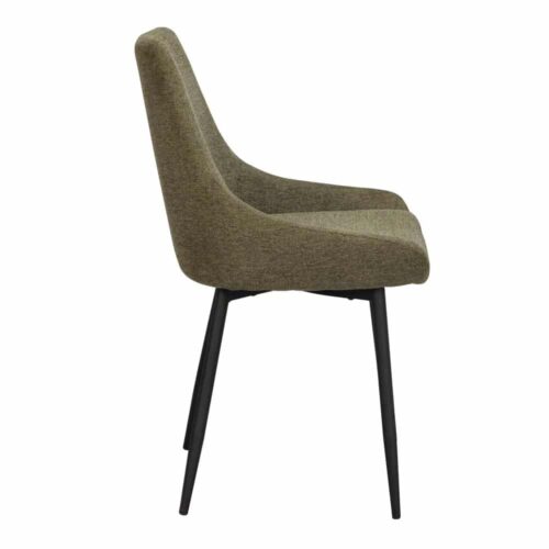 Sierra stol i modern design från Rowico. Stolen är klädd i ett grönt tyg och ben i svart pulverlackad metall. Stolens stoppade sits i kupad form gör den fantastisk skön att sitta i.