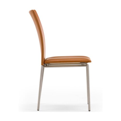 SM58 stol från danska Skovby. Läder Calvados/ borstat stål. En modern stol med en skönt rundad rygg som utstrålar elegans och klass!