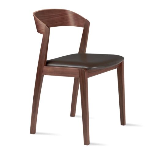 SM825 stol i oljad valnöt med svart skinnsits från danska Skovby. SM825 stol hämtar sin inspiration från 1960-talet.