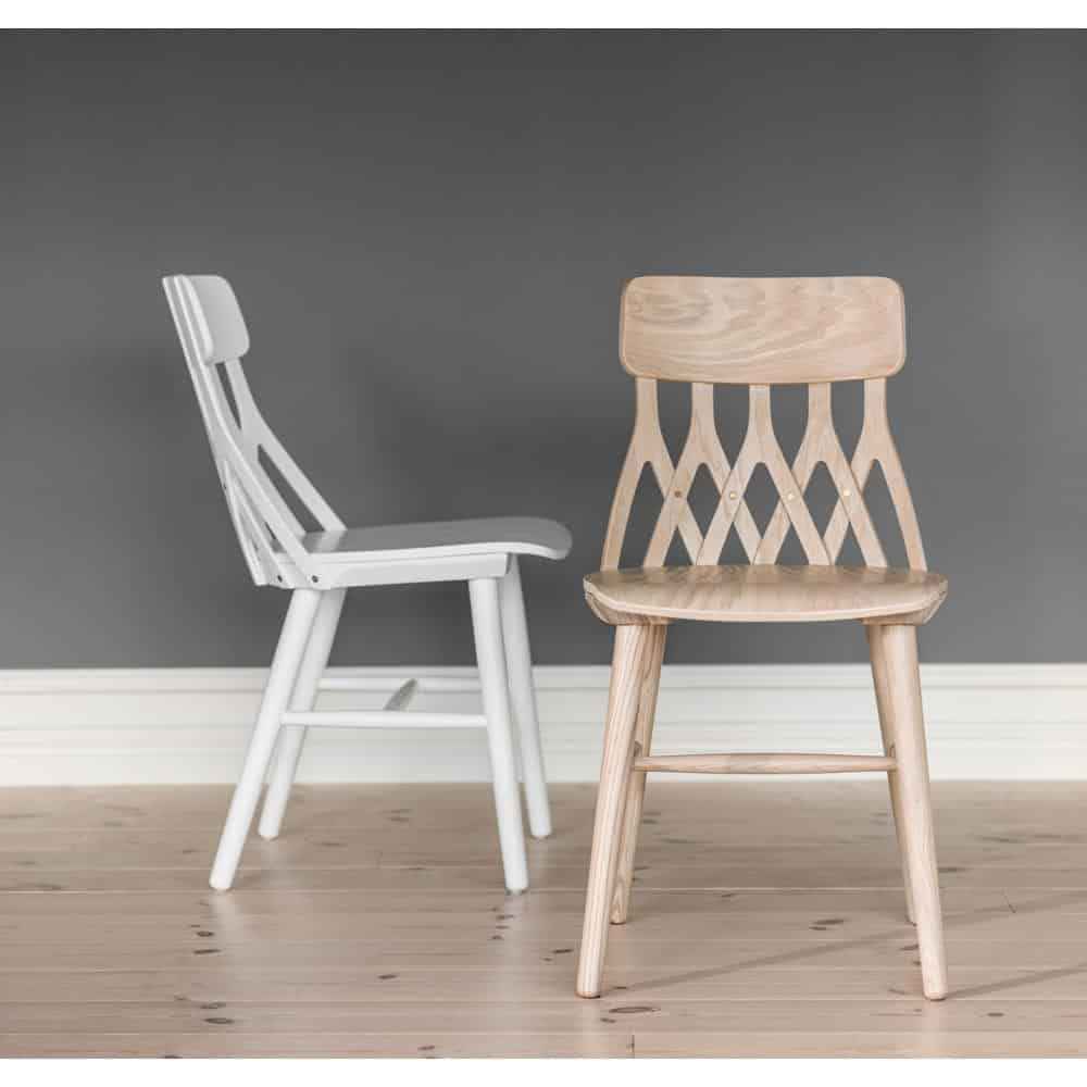 Y5 stol finns i vitoljad ek, oljad ek, vitlack och svartbets. dyna i fårskinn grafit, 690:-.