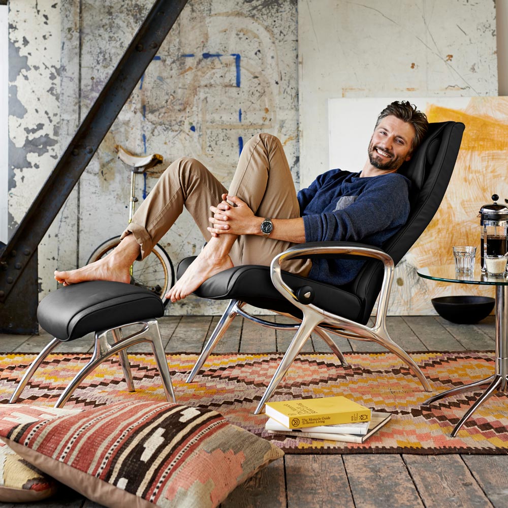 Bergen fåtölj inkl. fotpall - tyg orleans mörkgrå