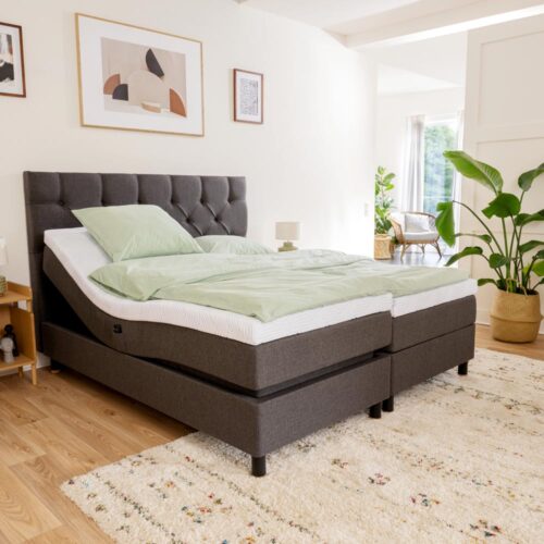 Inklusive 8 cm bäddmadrass. Överdraget kan tvättas. Flexibla lameller för minimalt slitage och optimal komfort. Finns med 3 olika känslor /hårdheter på bäddmadrassen: Mjuk, Medium och Fast. Bäddmadrassen finns också i SmartCool, för svalare sömn. SmartCool absorberar överflödig kroppsvärme för att hålla dig sval och fräsch under natten. Sängram av solid kärnträ. Finns i sju färger: Ivory, Dark grey, Warm grey, Sand, Warm stone, Stone och Dark stone. 10 års garanti på bäddmadrass, madrass, sängbotten. 5 år på motor och 3 år på fjärrkontroll.