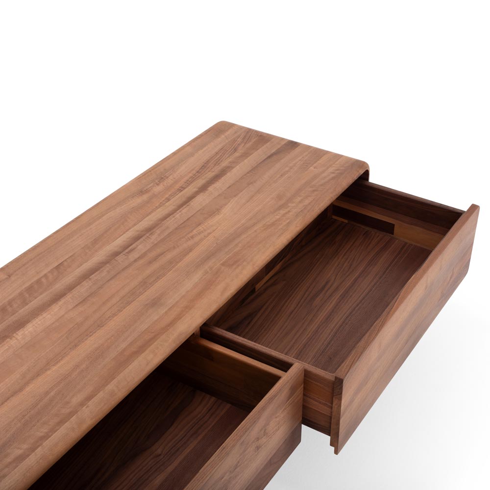 Fawn TV-bänk i massiv oljad valnöt med tre lådor från Gazzda. En mycket smäcker möbel med mjuka linjer och fint arbetade trädetaljer. Fawn TV-bänk ger en härlig kvalitétskänsla!