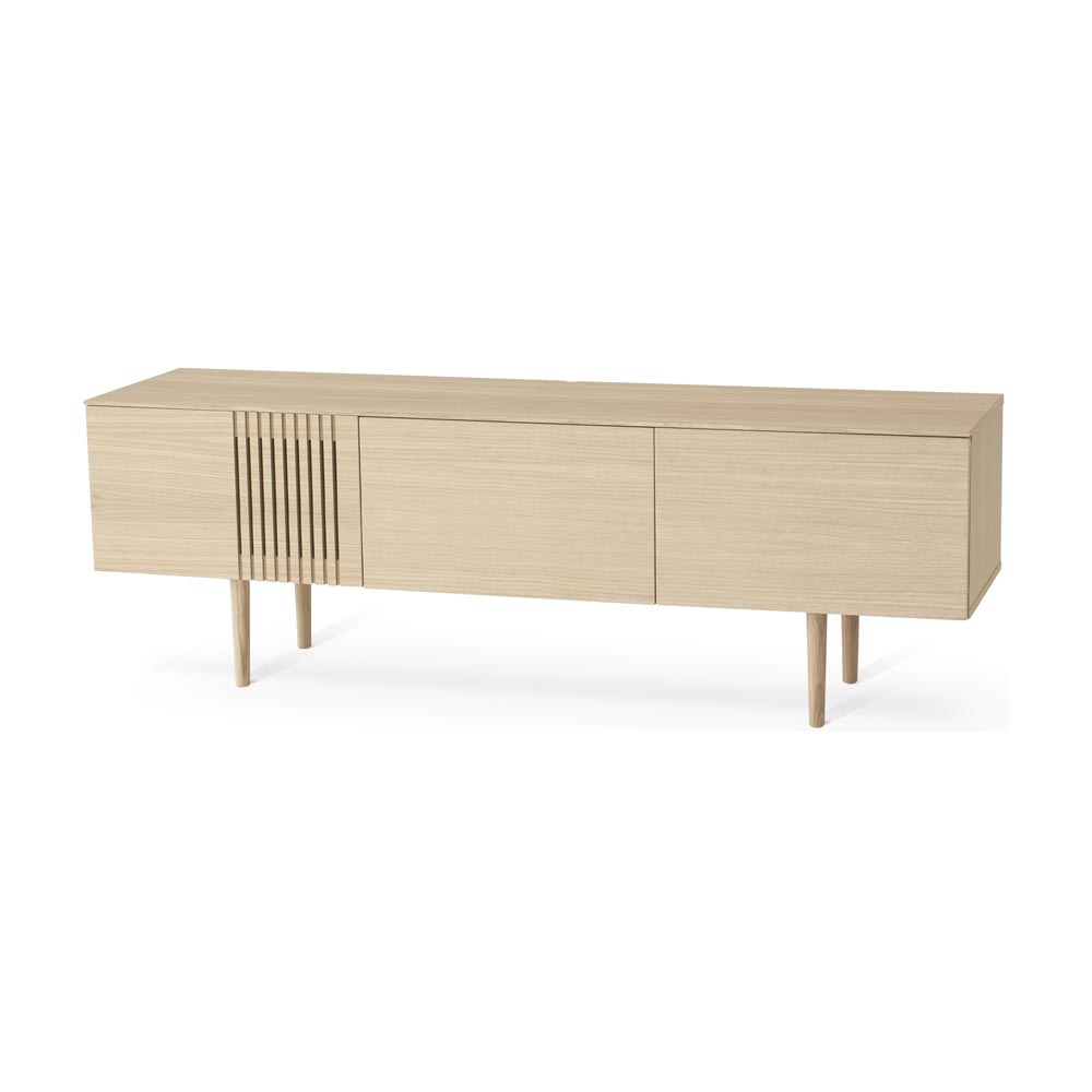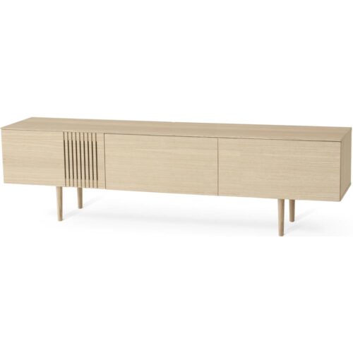 Joel TV-bänk i vitoljad ek från Torkelson. En snygg stilren TV-bänk som finns i två olika storlekar. Välj om möbeln ska stå på ben eller monteras på väggen.