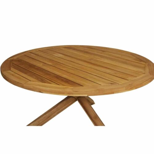 Eios runt matbord är ett generöst teakbord med massiv rustik skiva. Eios är ett praktiskt matbord med tre kryssben, vilket gör att man kan placera stolarna som man vill. Bordet har en diameter på hela 150cm vilket ger plats för upp till 8 personer beroende på val av stol.