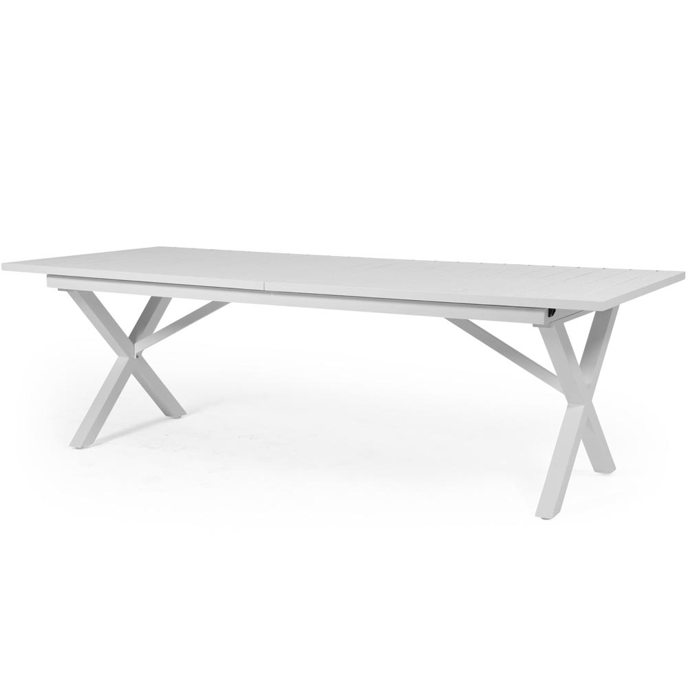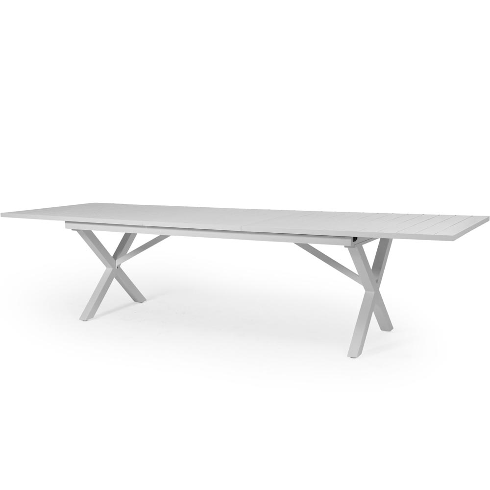 Hillmond matbord 240-310cm i mattlackad vit aluminium från Brafab. Ett perfekt matbord för den stora festen! Hillmond matbord har tvärgående aluminiumribbor med präglat trämönster. Snyggt kryssunderrede.