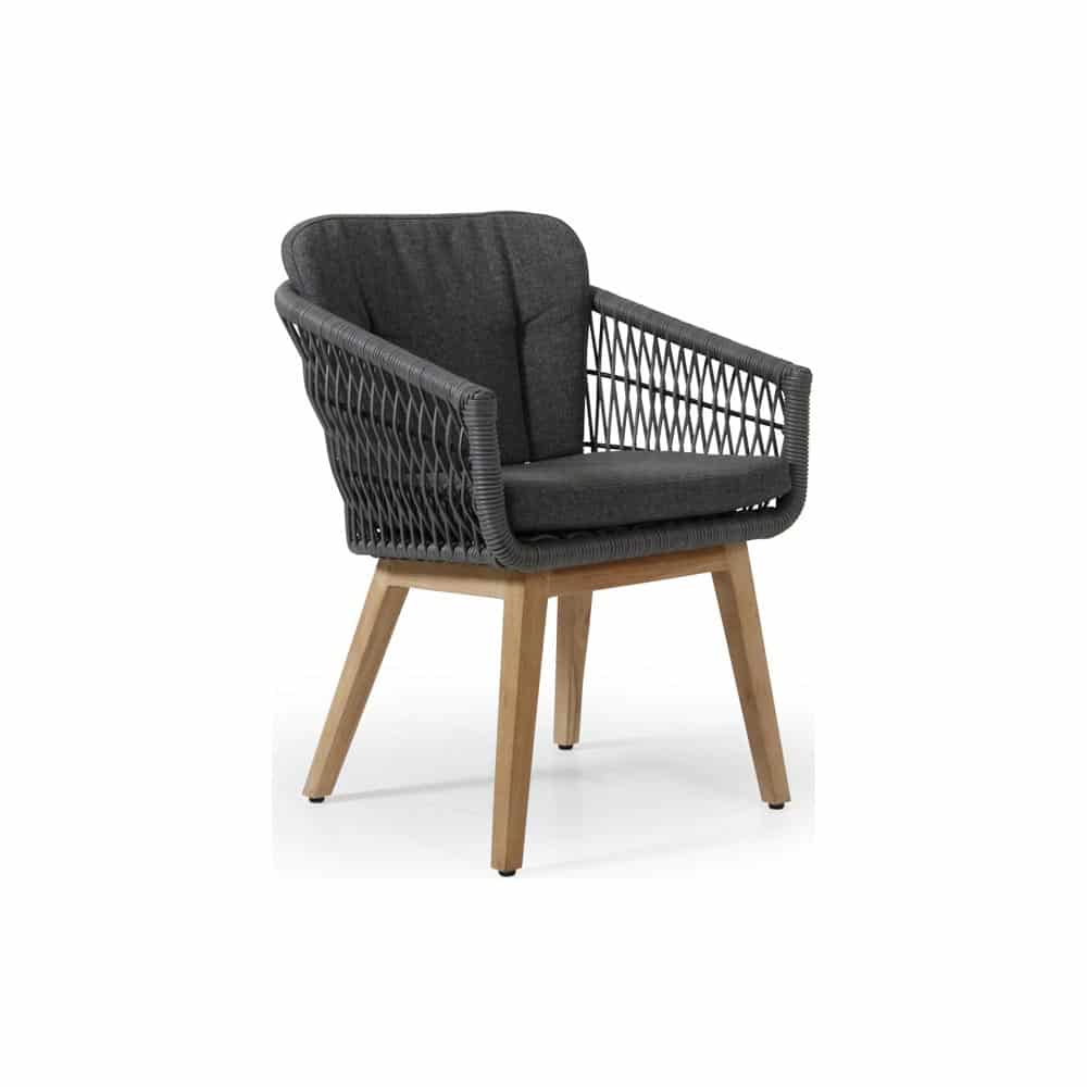 Kenton karmstol från Brafab. Kenton är tillverkad i en snygg kombination av grå konstrotting och massiv teak. Inkl. sitt- + ryggdyna i grått olefintyg.