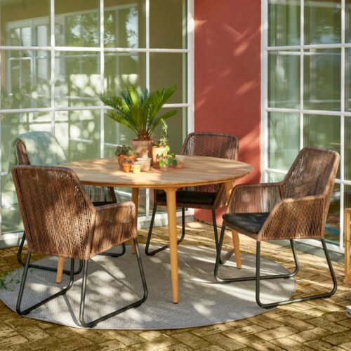 Midway karmstol i twistad brun konstrotting från Brafab. En bekväm stol med mjuka moderna former som snyggt kombineras med olika typer av bord. Till stolen följer dyna i olefintyg.