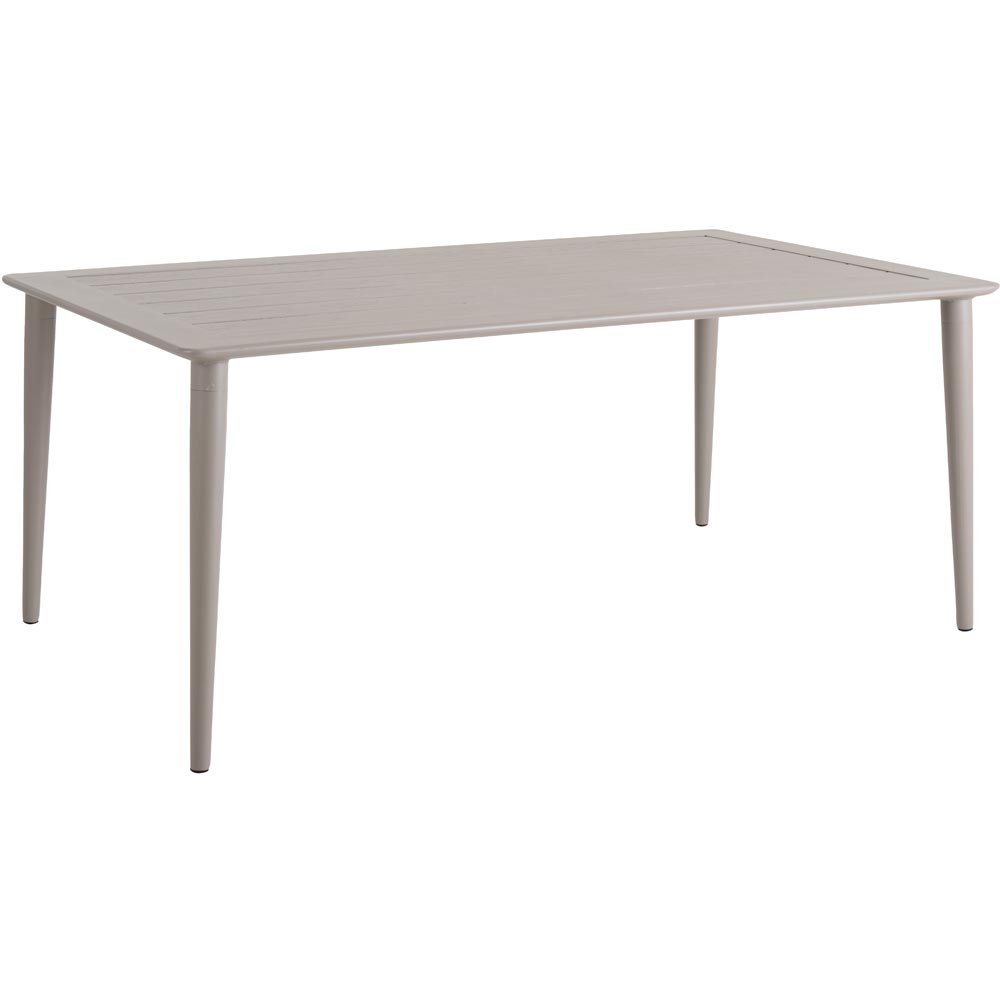 Nimes matbord i beige aluminium från Brafab. Snyggt ribbad bordstopp med runda konade ben. Nimes matbord är framtaget med en ny unik teknik som ger ett dämpande ljud på bordsskivan.