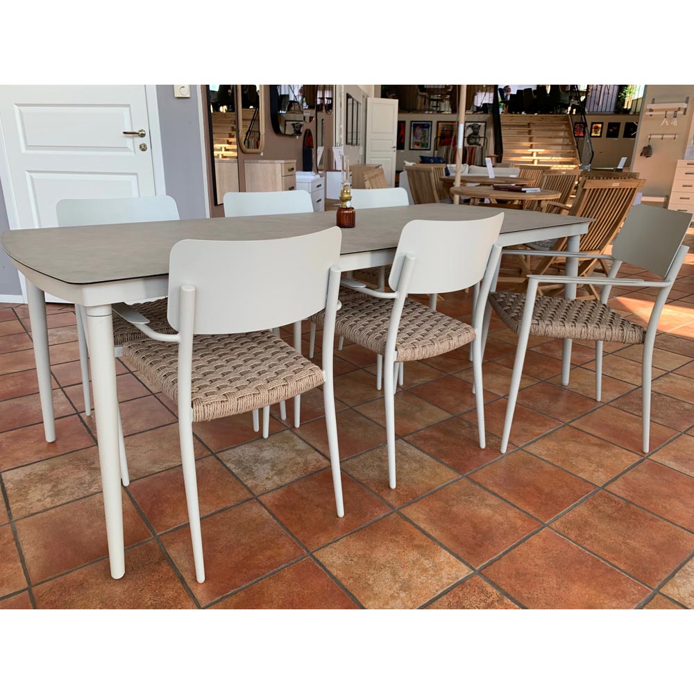 Stinsö matgrupp från Backyard Lifestyle består av matbord + 6st karmstolar.