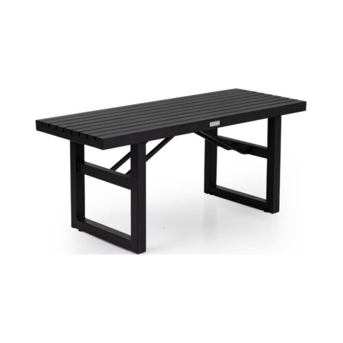 Vevi bänk i svart mattlackad aluminium från Brafab. Vevi i modern och elegant design, sittbänk som snyggt kombineras till matbord i samma serie.