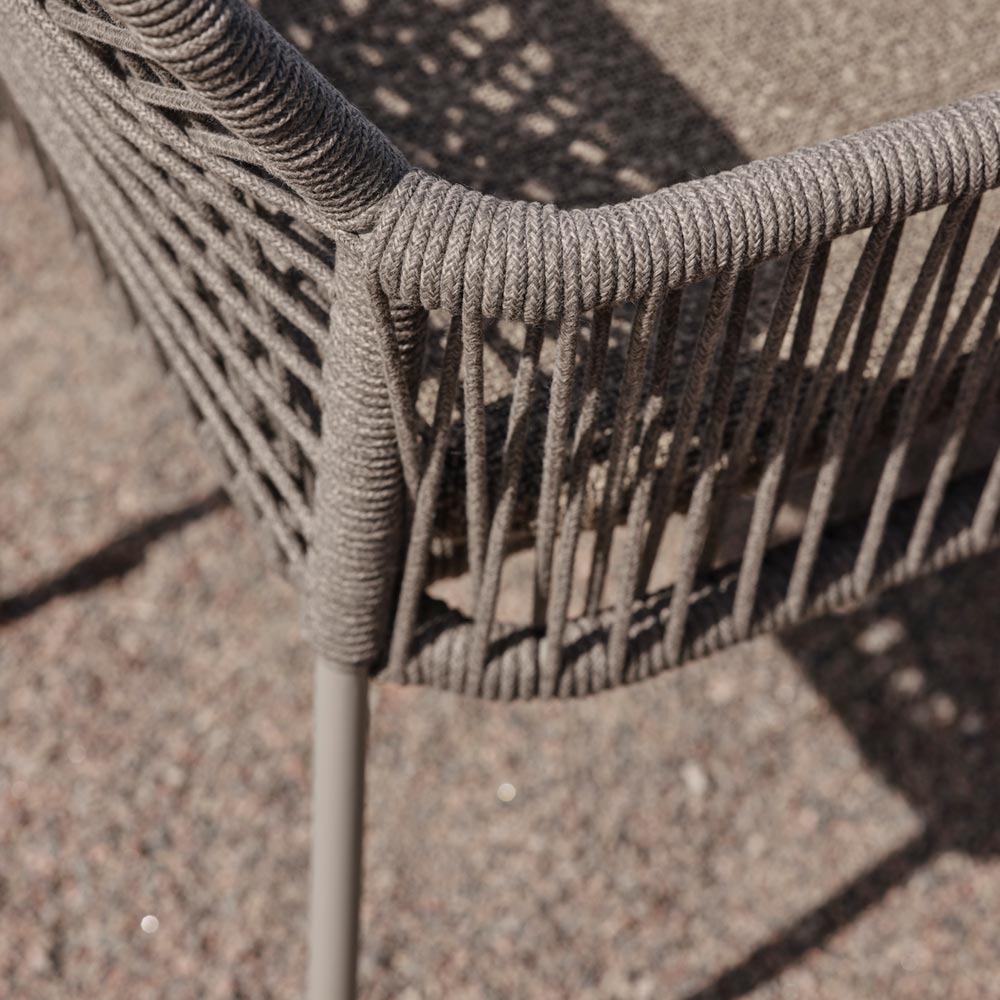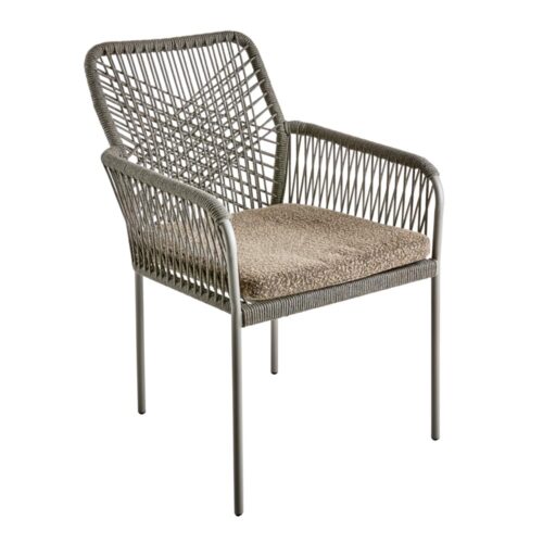 Vira karmstol i färg Khaki/ Mud Brown med en bekväm komfort från Brafab. Pulverlackerad stålram ger ett stabilt stöd och det vackert flätade mönstret med repdesign ger en organisk känsla med sina jordnära toner. Sittdyna ingår för extra skön komfort.