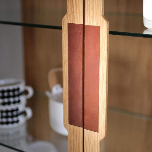 Övide vitrinskåp i vitoljad björk från gotländska G.A.D. Den avskalade designen med glassidor ger ett luftigt och modernt intryck med bästa exponering av dina käraste ägodelar! Dörrarna öppnas med Push-öppning med beslag i läder eller rostfritt stål.