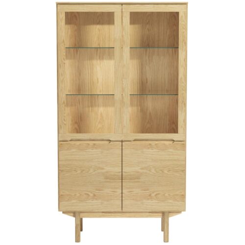 SM307 vitrinskåp i massiv /fanérad oljad ek från danska Skovby. Snygg och stilren design i retro med infrästa handtag och indragna ben. Inklusive belysning.