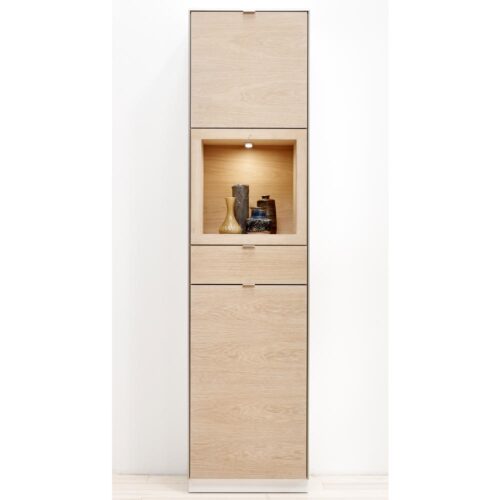 SM914 vitrinskåp i vitoljad ek från danska Skovby. Unik design med den öppna delen i mitten av skåpet som är belyst med LED. En fin yta att förvara föremål på med bästa exponering!